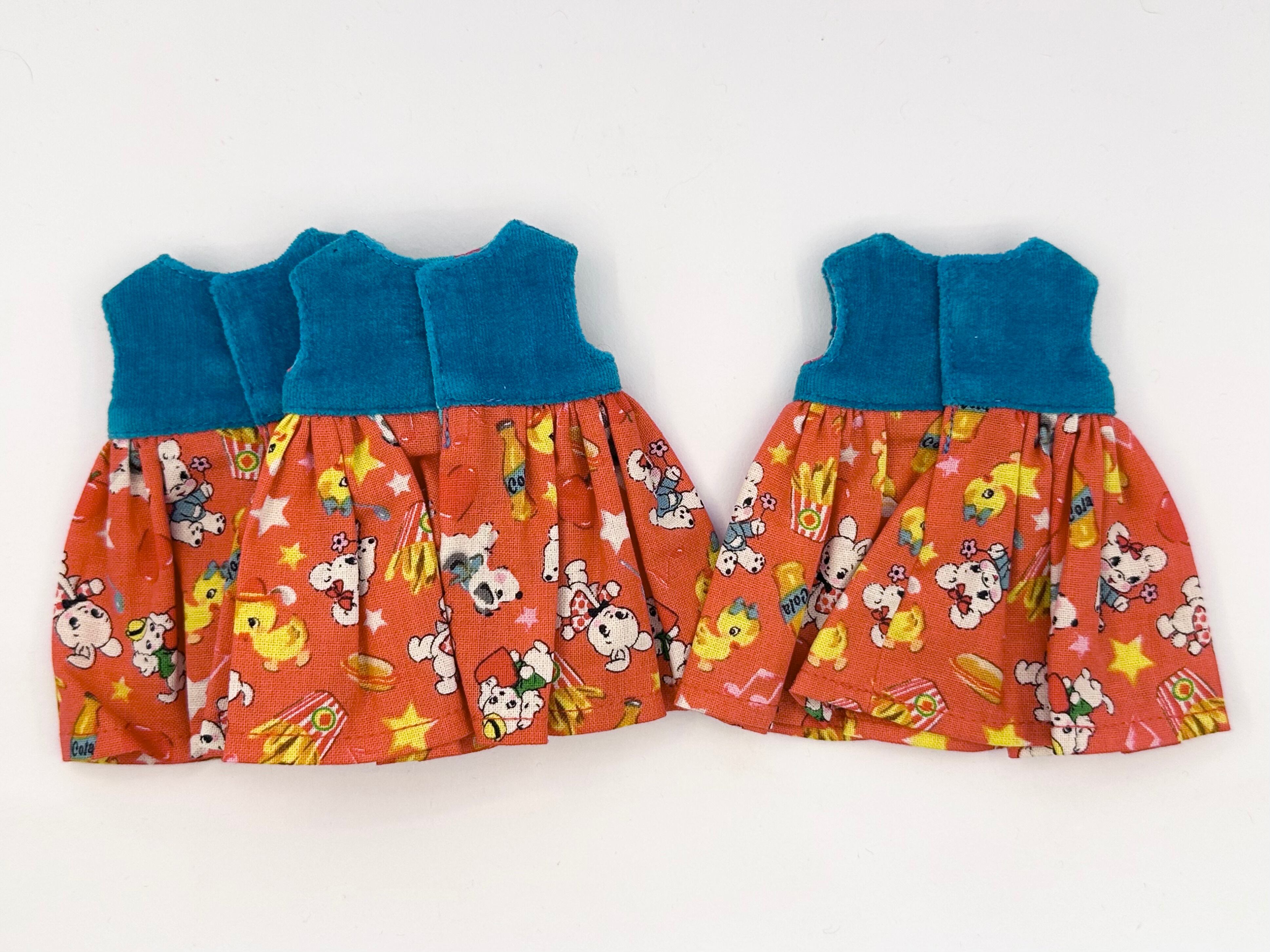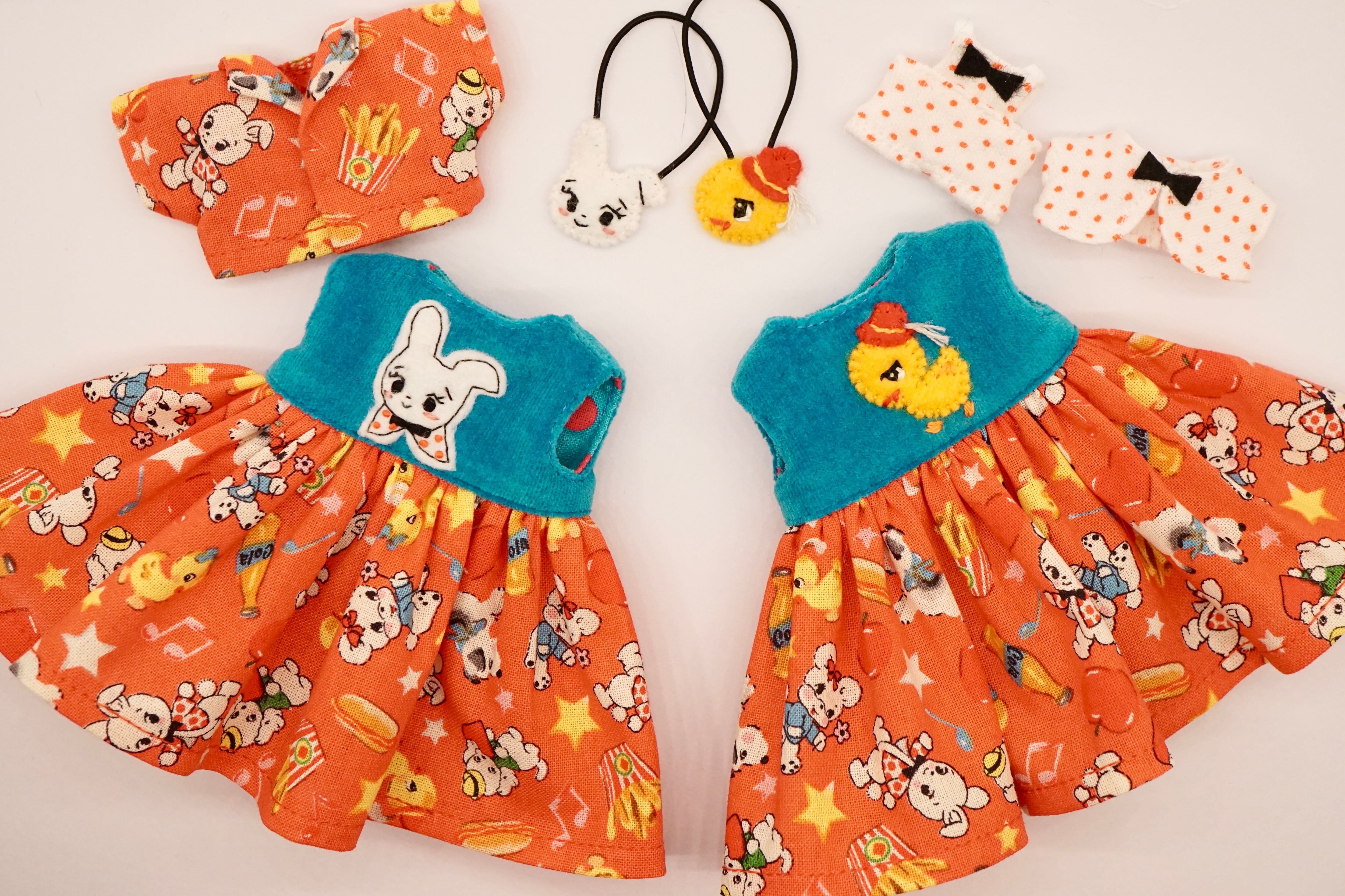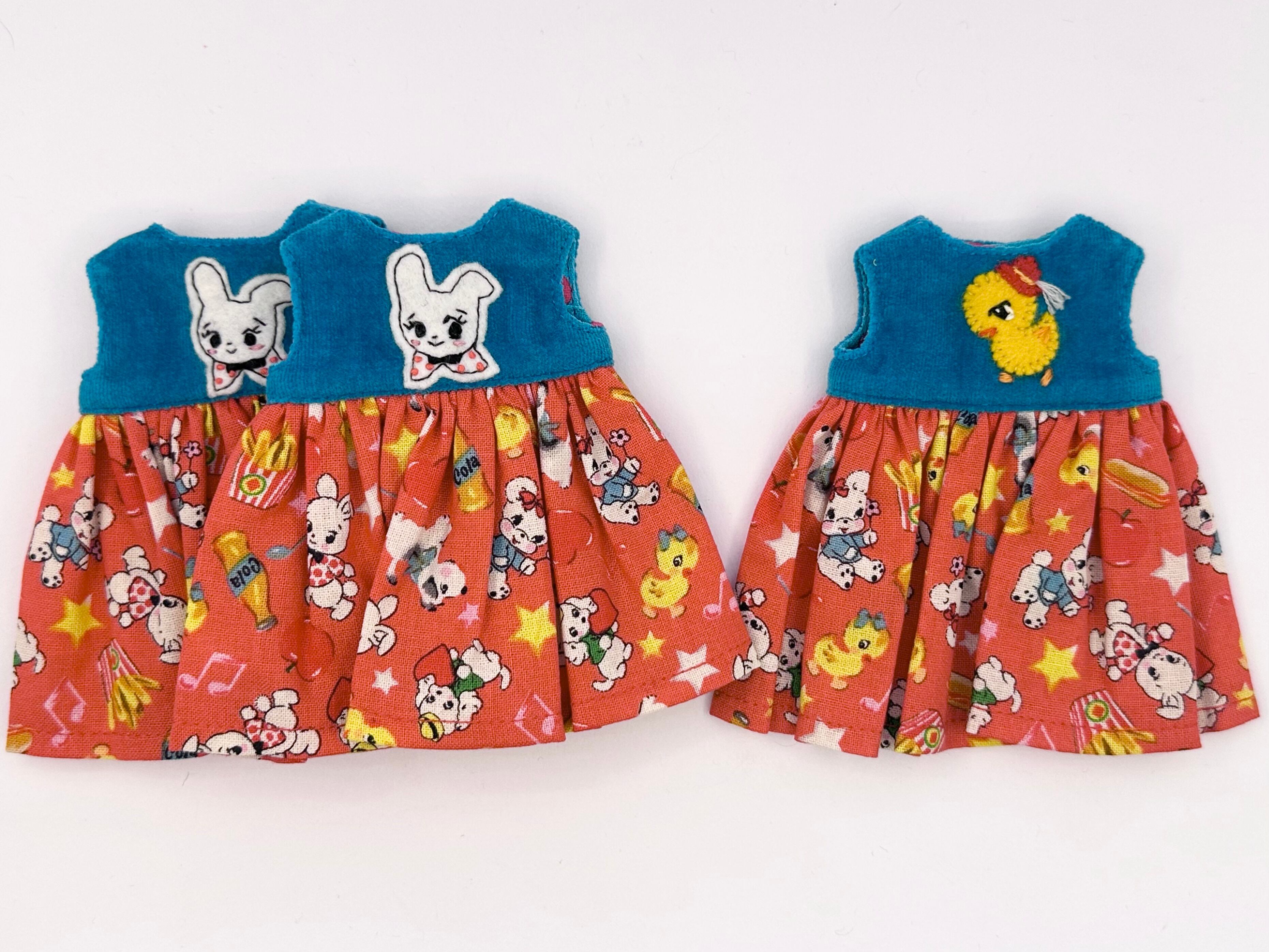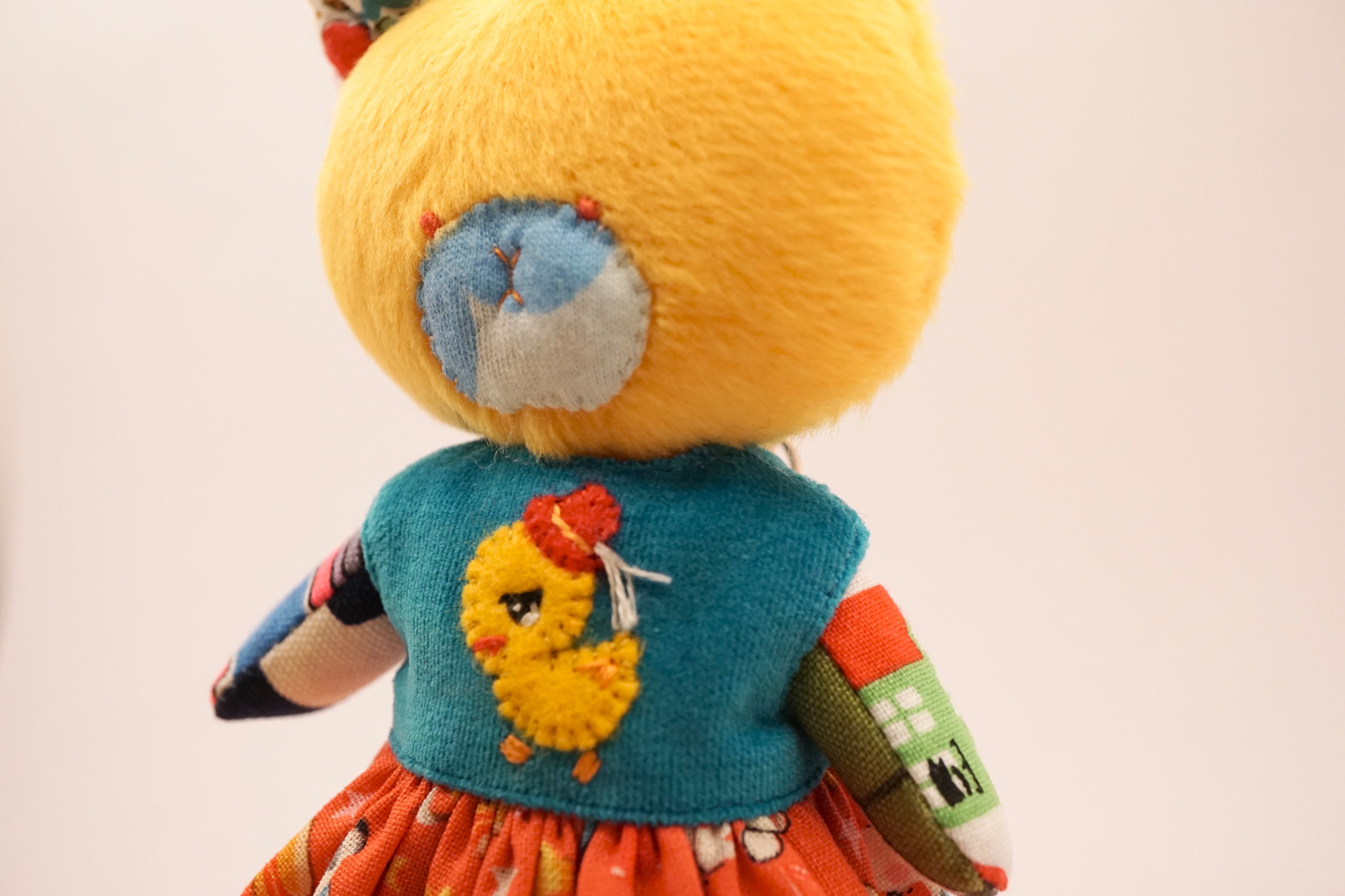 レトロうさぎとひよこをフェルトだアップリケしてます。