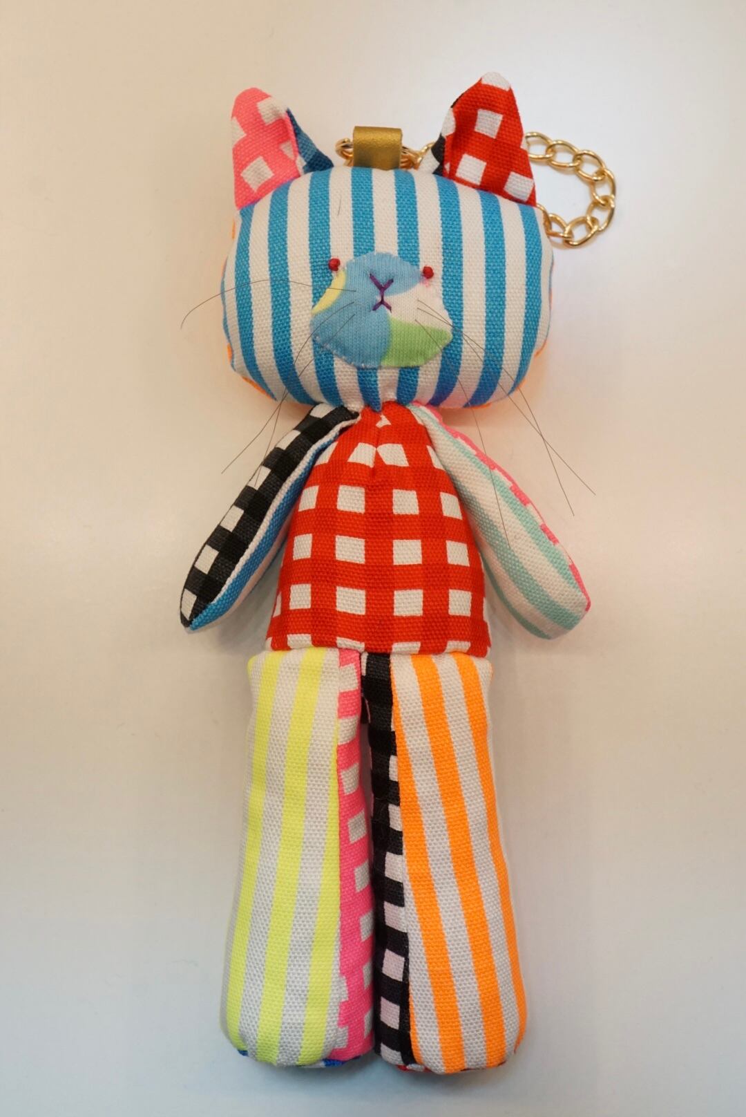 色々な布を使って作った猫のぬいぐるみ、ねこじろうです。