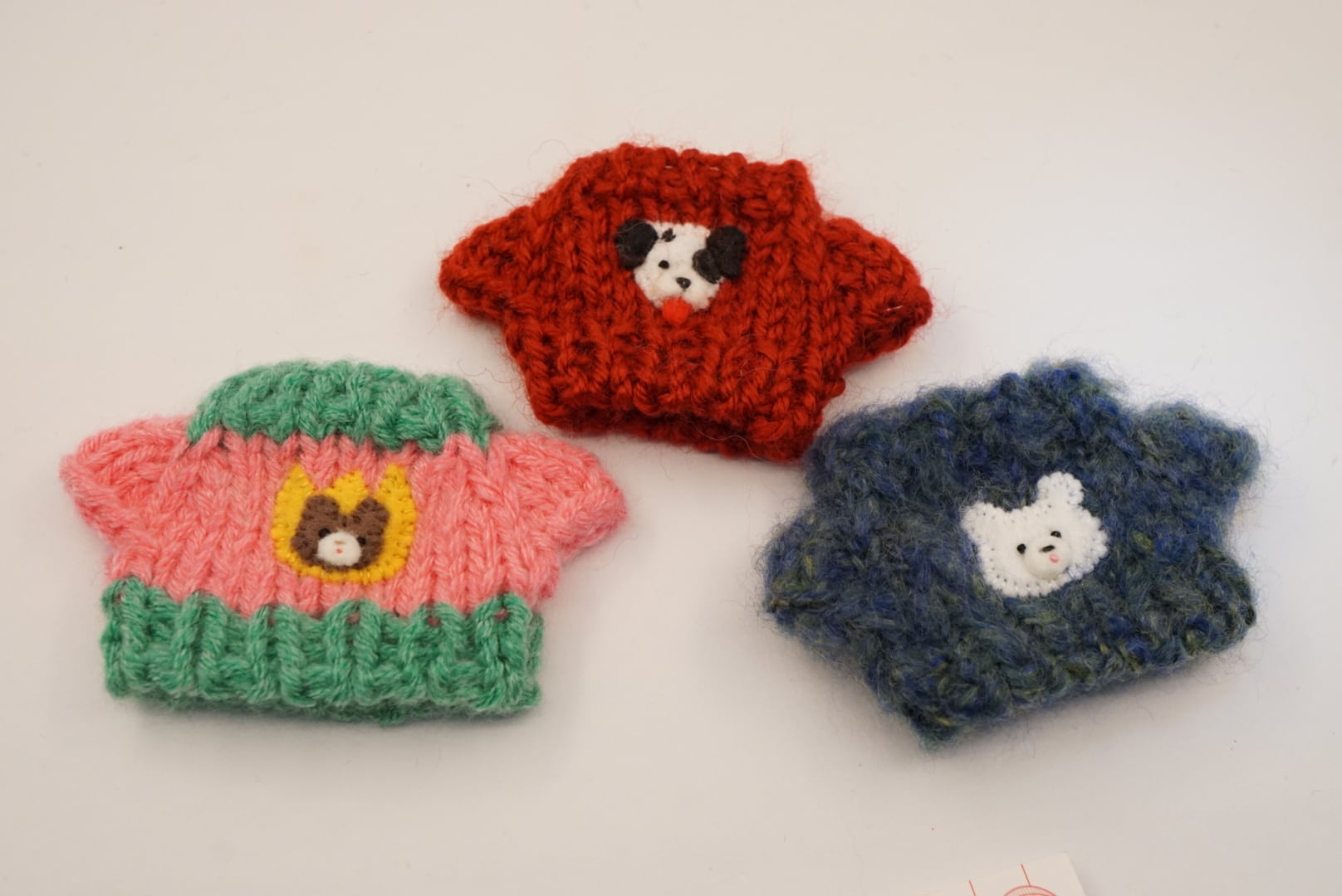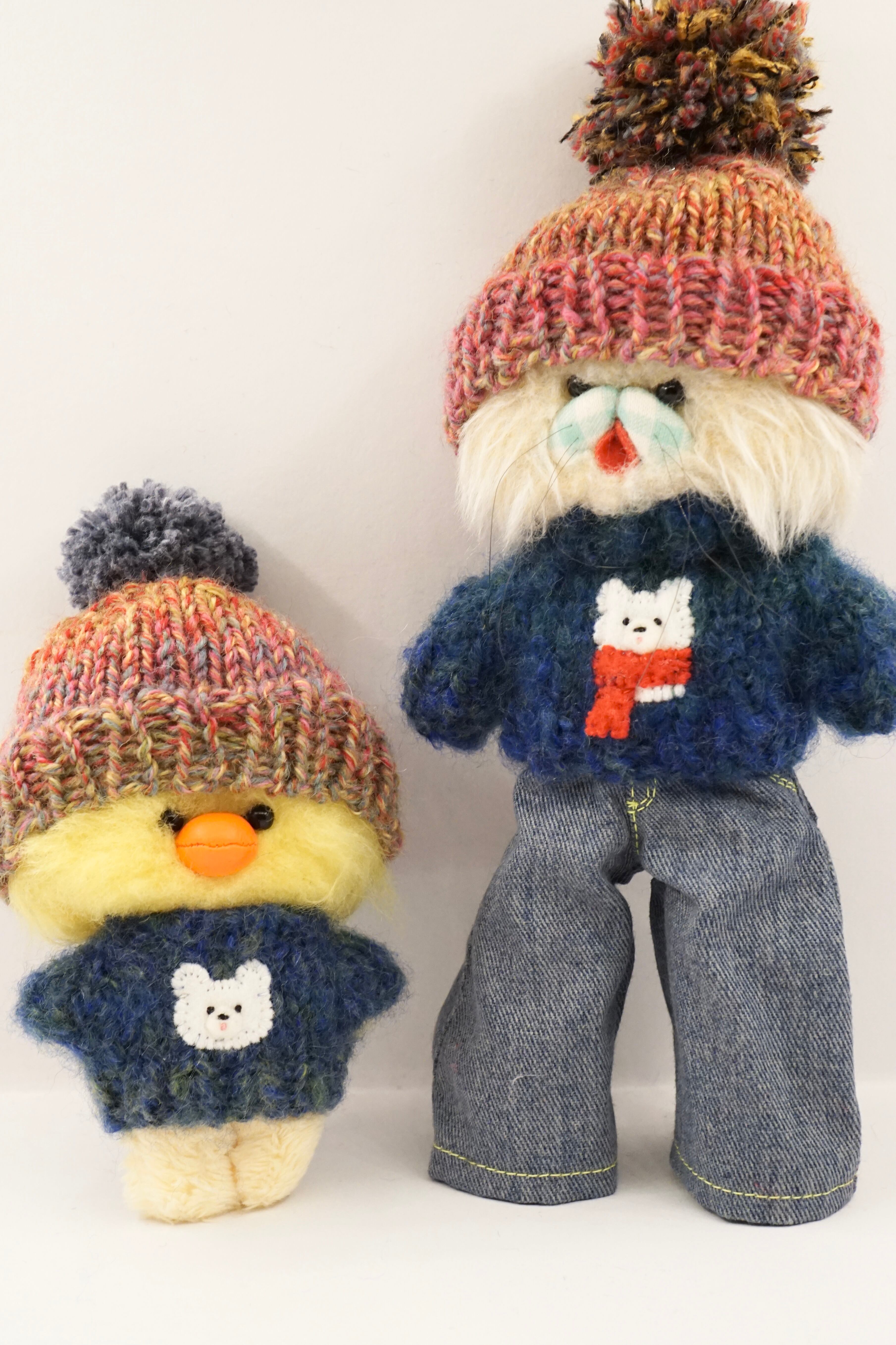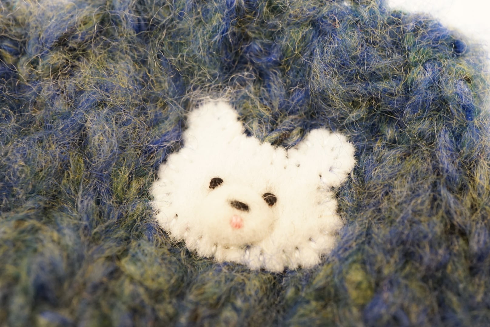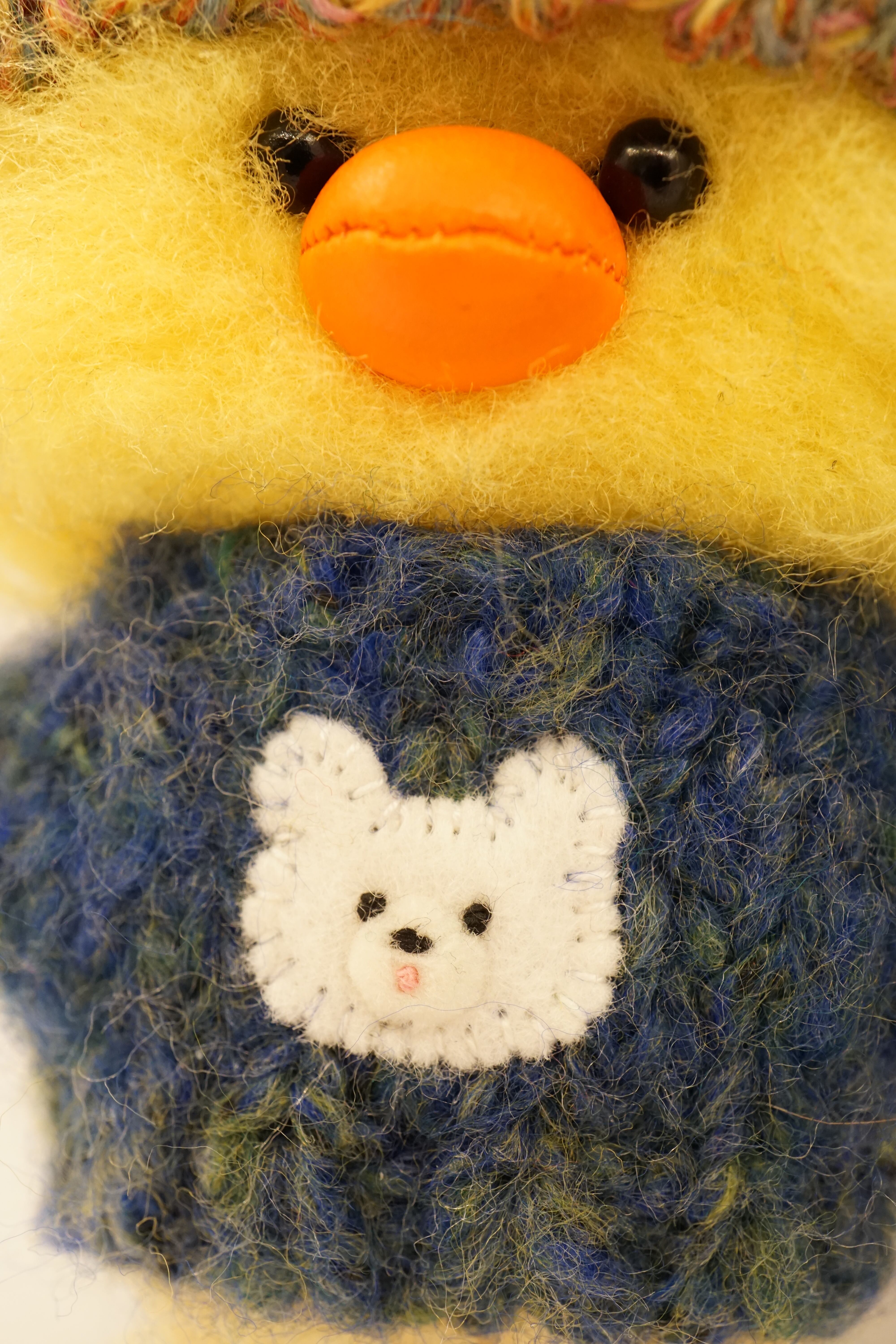 手編みセーターに、フェルトでアップリケしてあります。