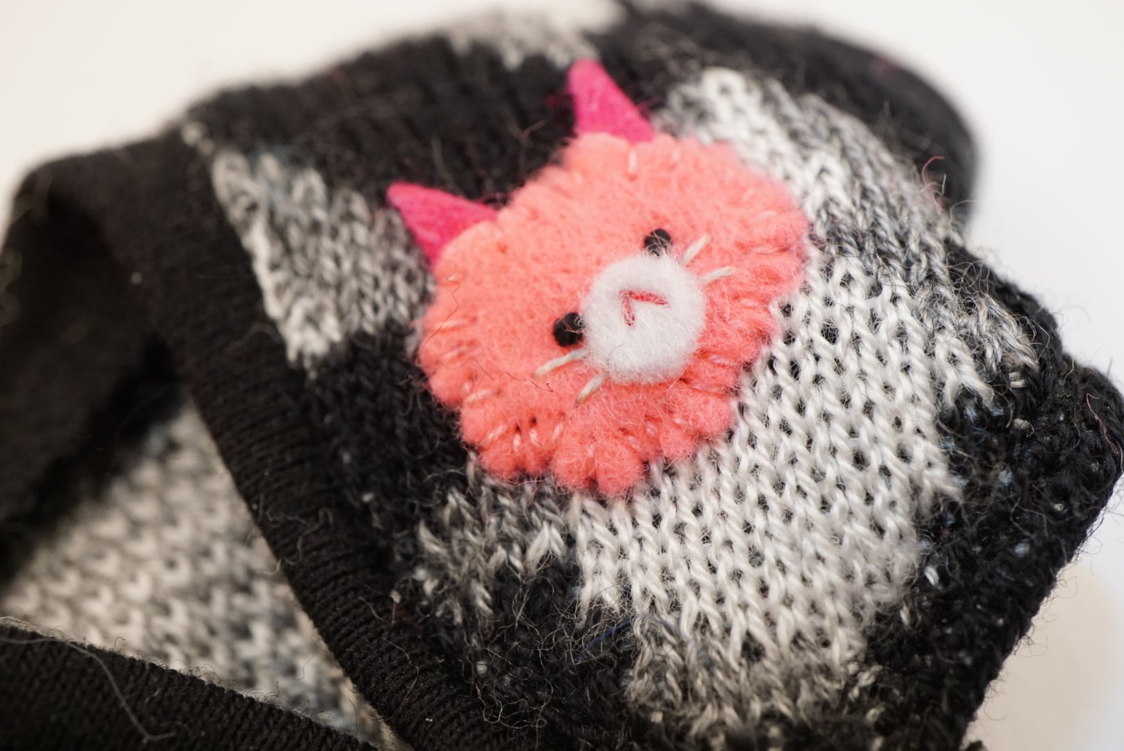 ニット素材のカーディガンに、フェルトでアップリケしてあります。